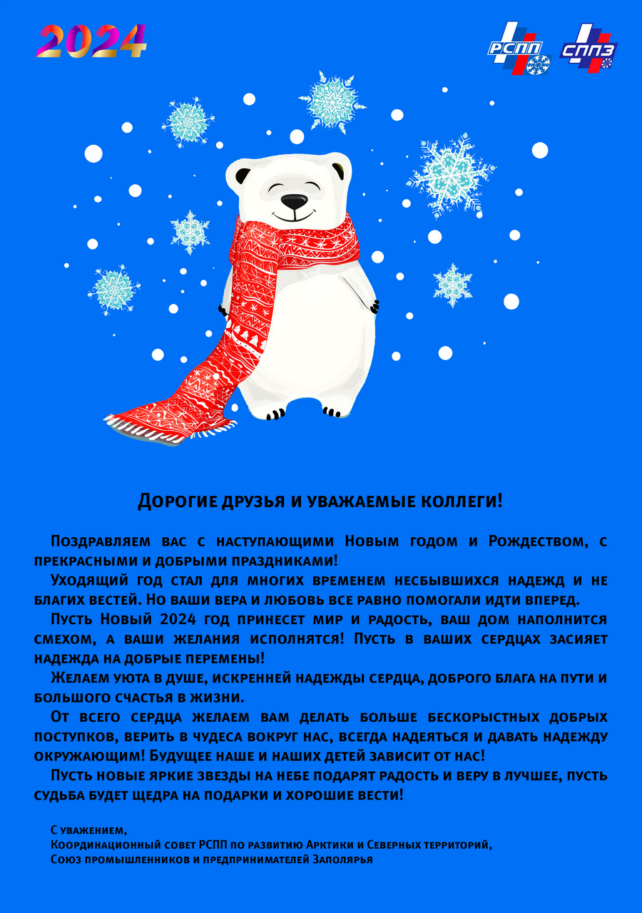 От имени сообщества предпринимателей Санкт-Петербурга, ведущих свою деятельность в регионах Крайнего Севера России от всей души поздравляю всех с наступающим Новым годом и Рождеством!